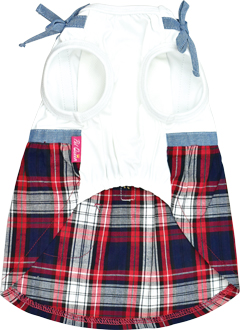 シャンブレー風生地のリボンやポイント切り替えがカジュアルで爽やか♪
